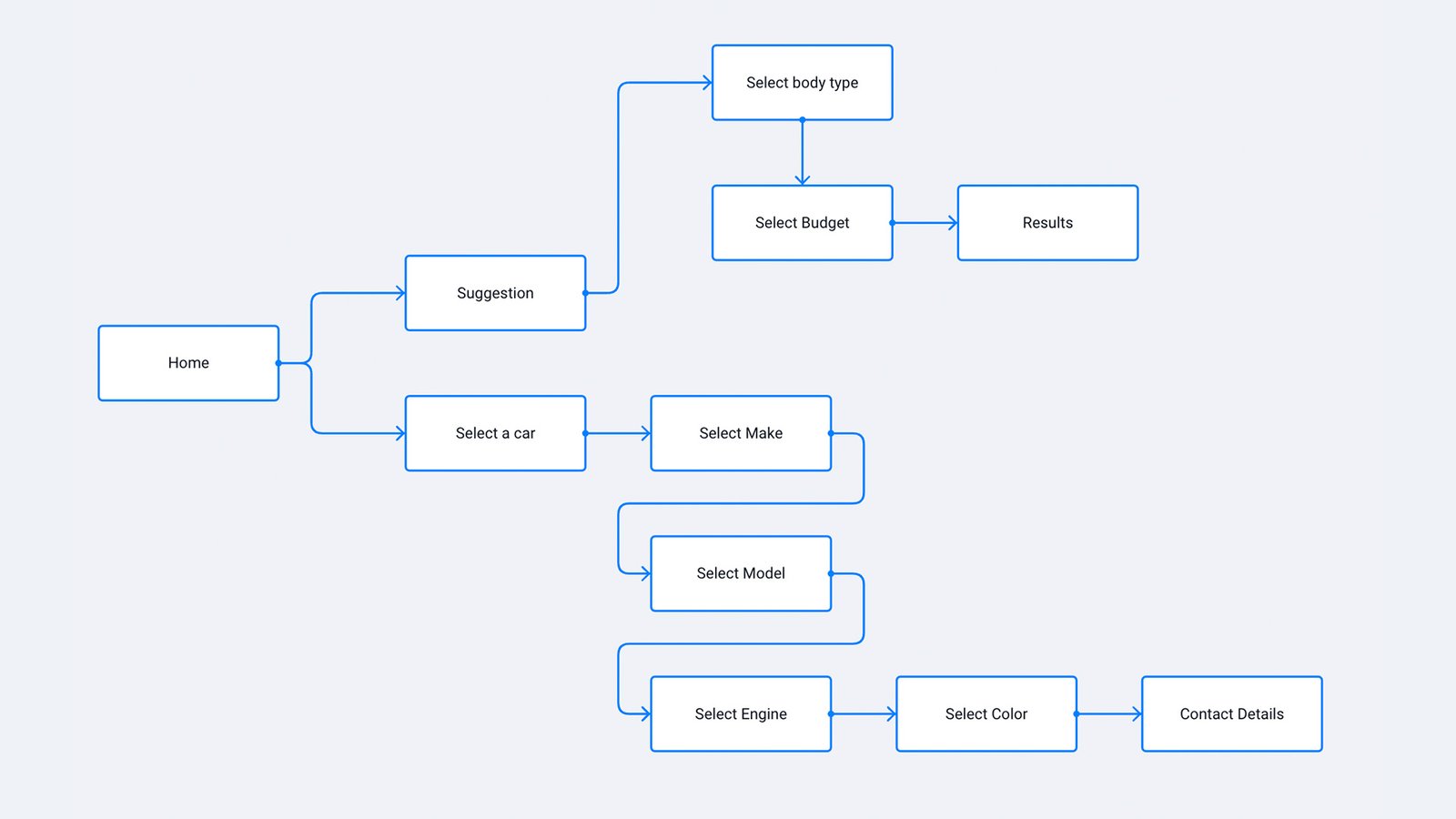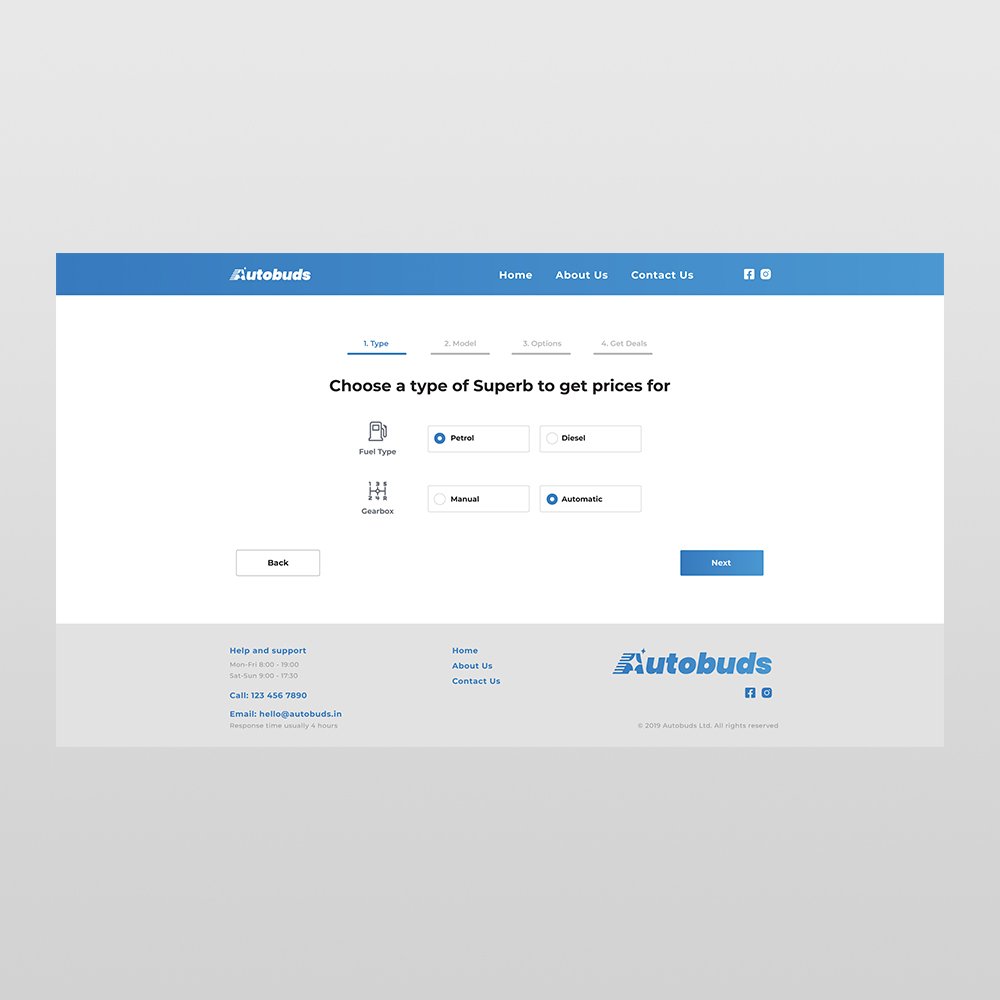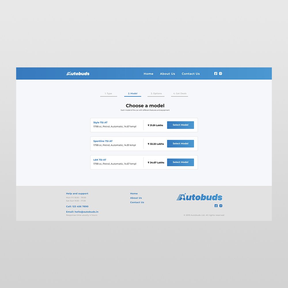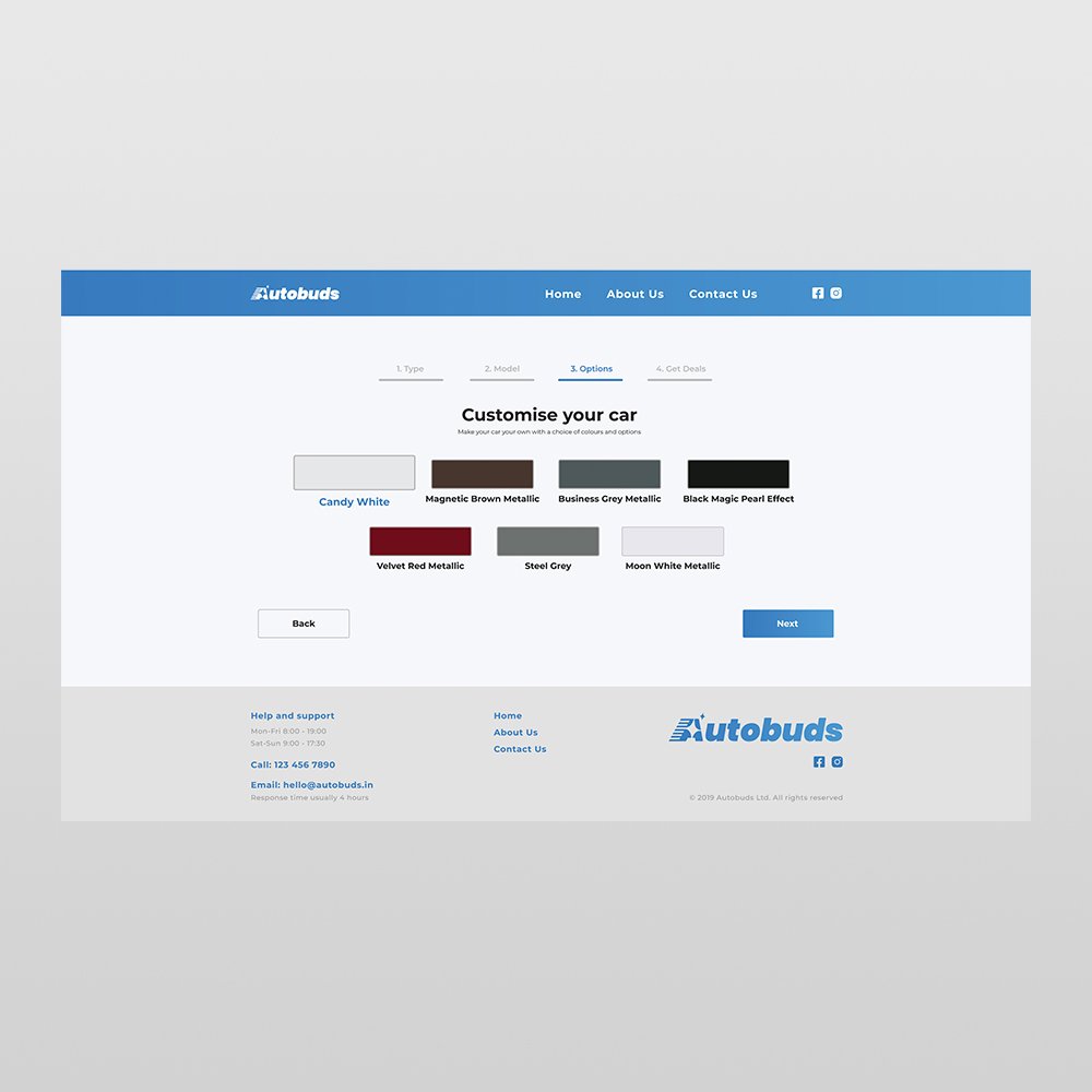 Creating a simple UI and step process to make users engaged. Giving users so much information at one time makes them confused. So I design a process in which they can select one option at a time. Like colour, engine option, transmission etc.